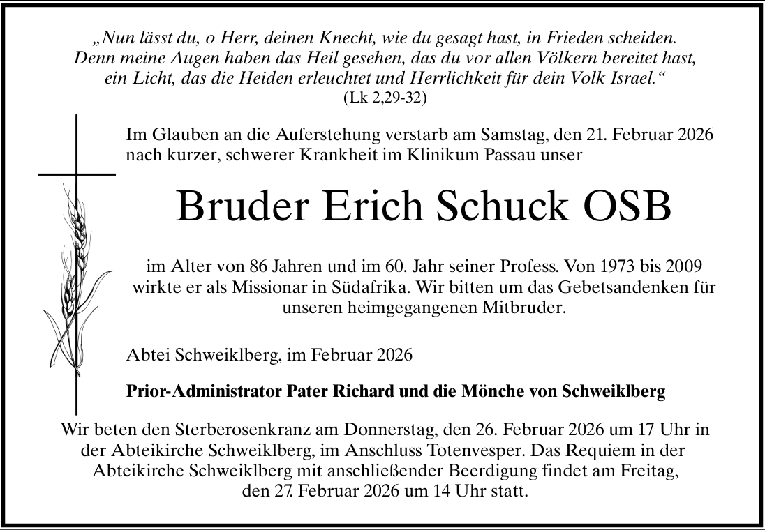 - Zum Tode von Br. Franziskus (Hermann-Josef) Rohjans OSB