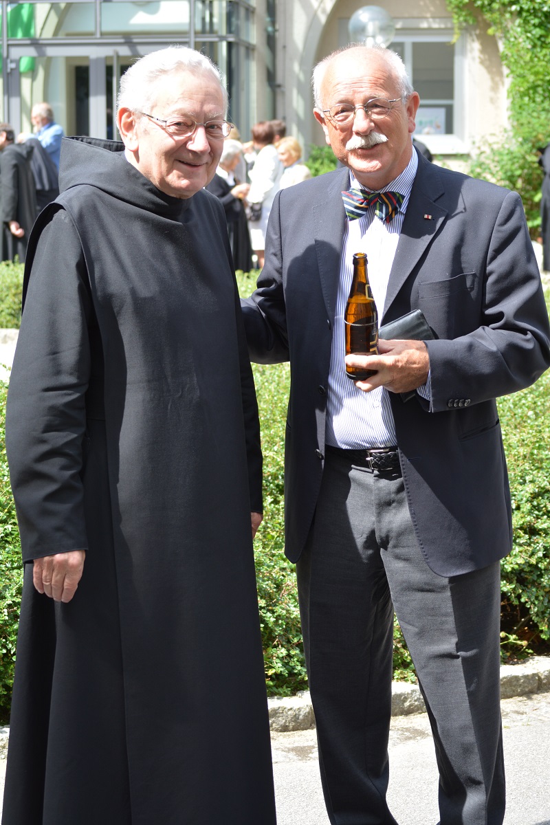 Am Samstag, den 21. Juni 2014, durften wir auf dem Schweiklberg ein Jubiläum feiern: „100 Jahre Erhebung zur Abtei.“ Der Einladung waren viele Gäste gefolgt. Um 9.00 Uhr begann der festliche Gottesdienst. Generalvikar Dr. Klaus Metzl hielt die Predigt. Nach dem Schlusssegen versammelten sich die Gottesdienstbesucher vor der Schule zum Umtrunk und zum Gespräch. Gegen 11.00 Uhr begleitete die Vilshofener Stadtkapelle unter Leitung von Andrea Wagenpfeil die Gästeschar in die Turnhalle zum Festakt. Nach der Begrüßung von Abt Rhabanus folgten Grußworte von Abt Aloysius Althaus aus der Abtei Königsmünster in Meschede/Sauerland, gefolgt von Generalvikar Prälat Dr. Klaus Metzl, Landrat Franz Meyer und Bürgermeister Florian Gams. Umrahmt wurde der Festakt von der Stadtkapelle Vilshofen. Der Festakt wurde durch eine Powerpointpräsentation, die einem Spaziergang durch die Schweiklberger Abteigeschichte glich, abgerundet. Daraufhin wurde der „Engel des Herrn“ gebetet und ein letztes Mal erklang ein Marsch. Im Beda-Haus versammelten sich dann die geladenen Gäste zum Mittagessen. Um 14.30 Uhr beteten wir mit einigen Gästen die Vesper und das „Jubiläumskonzert für Orgel, 3 Trompeten und Pauken“ gab dem Festtag einen würdigen Abschluß.